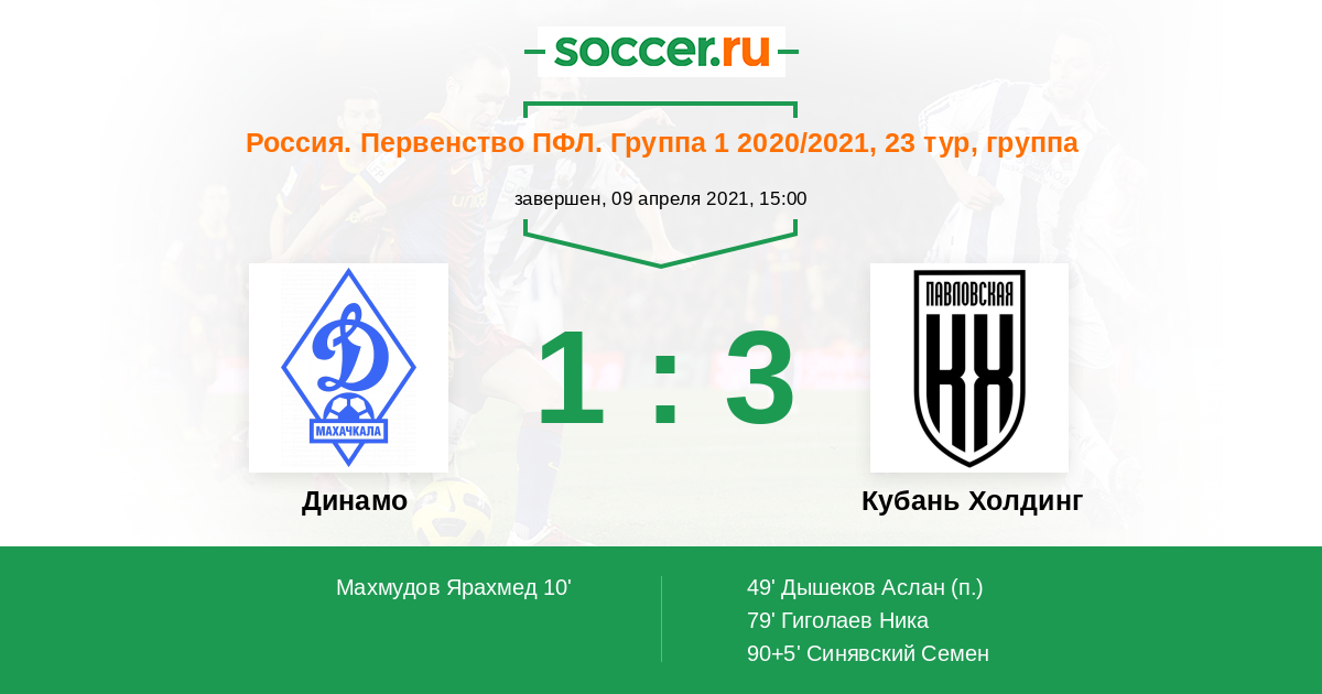 Протокол матча Динамо против Кубань Холдинг