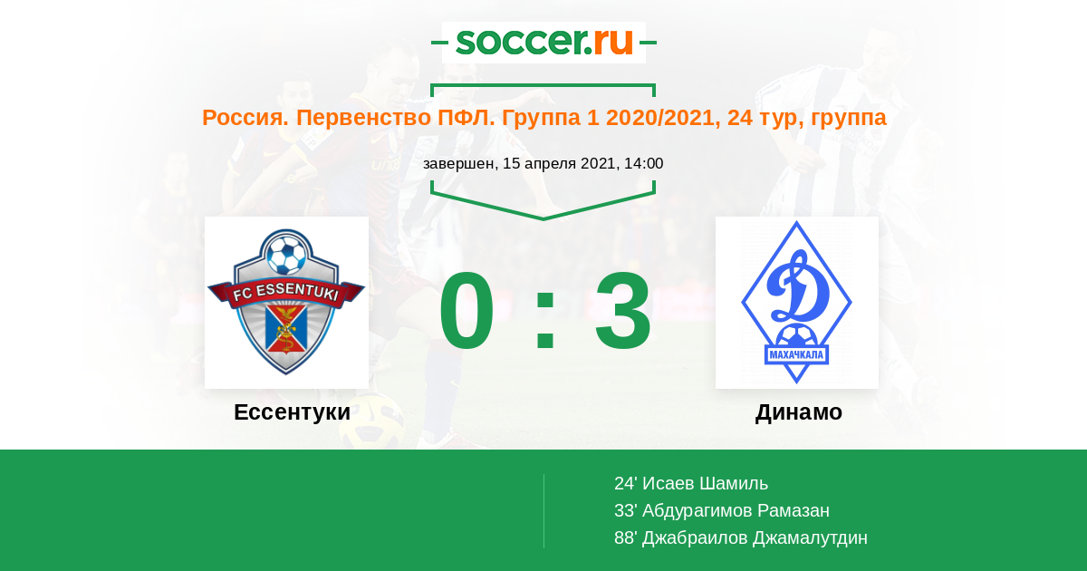 Протокол матча Ессентуки против Динамо