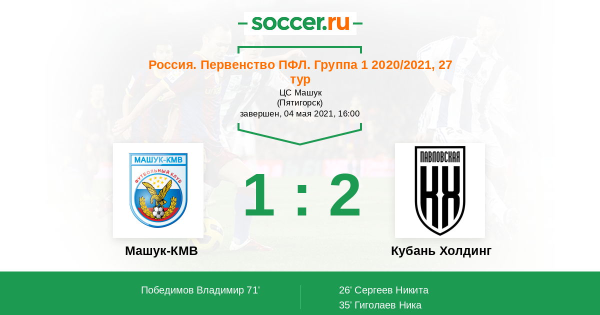Протокол матча Машук-КМВ против Кубань Холдинг