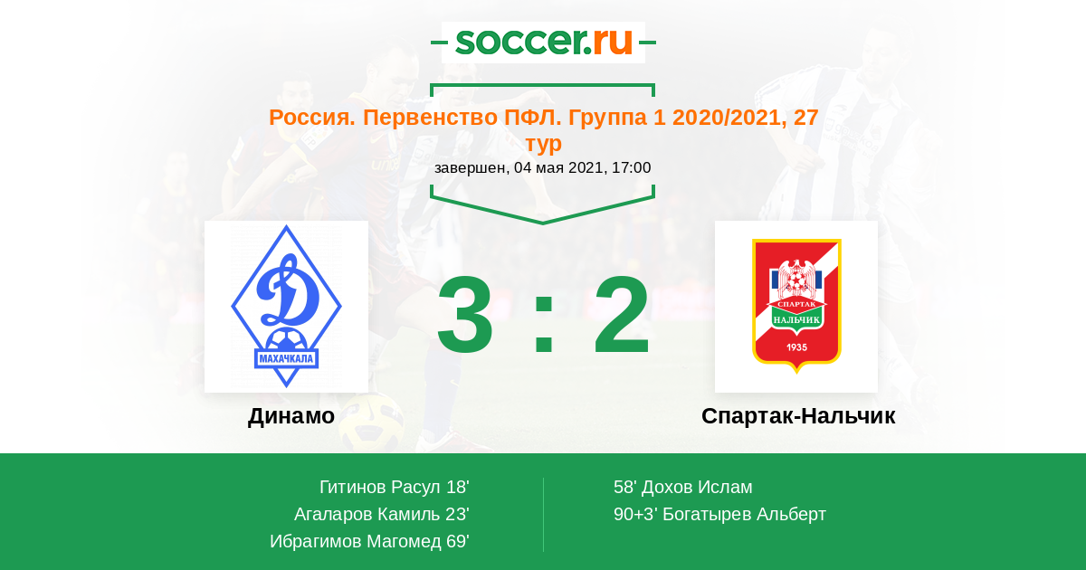 Протокол матча Динамо против Спартак-Нальчик