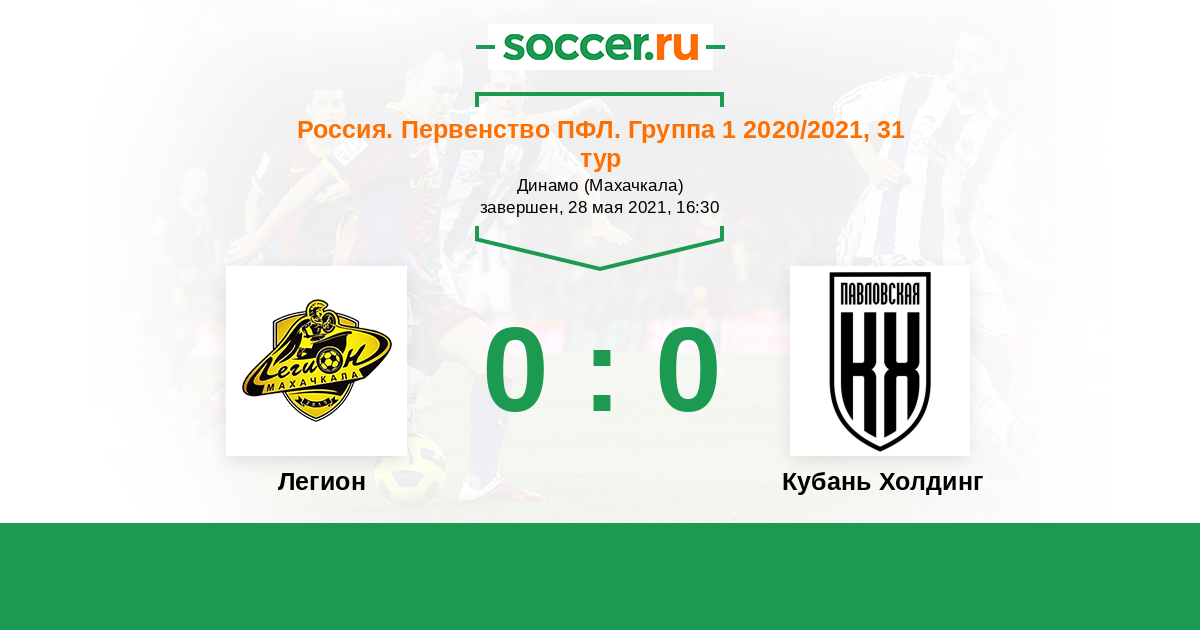 Протокол матча Легион против Кубань Холдинг