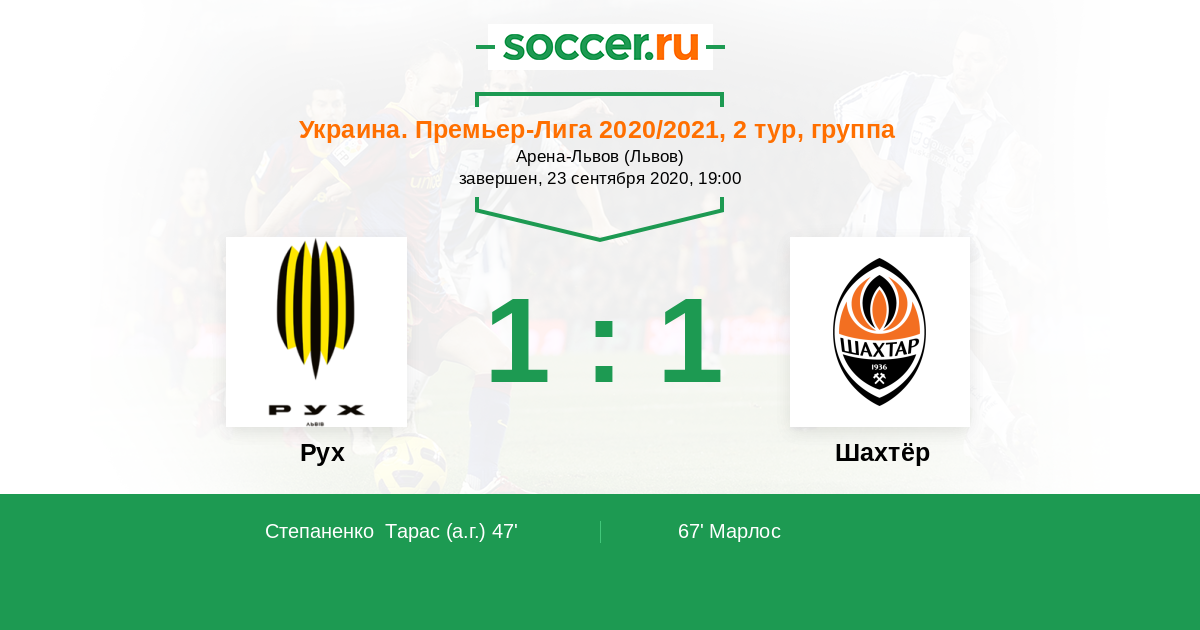 Протокол матча Рух против Шахтёр