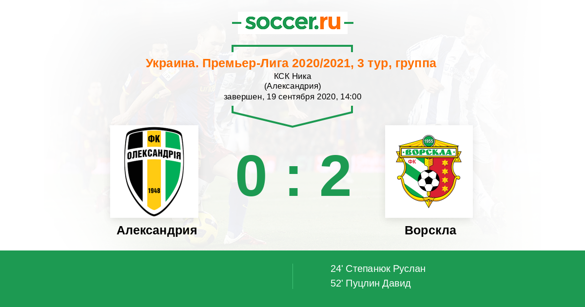 Протокол матча Александрия против Ворскла