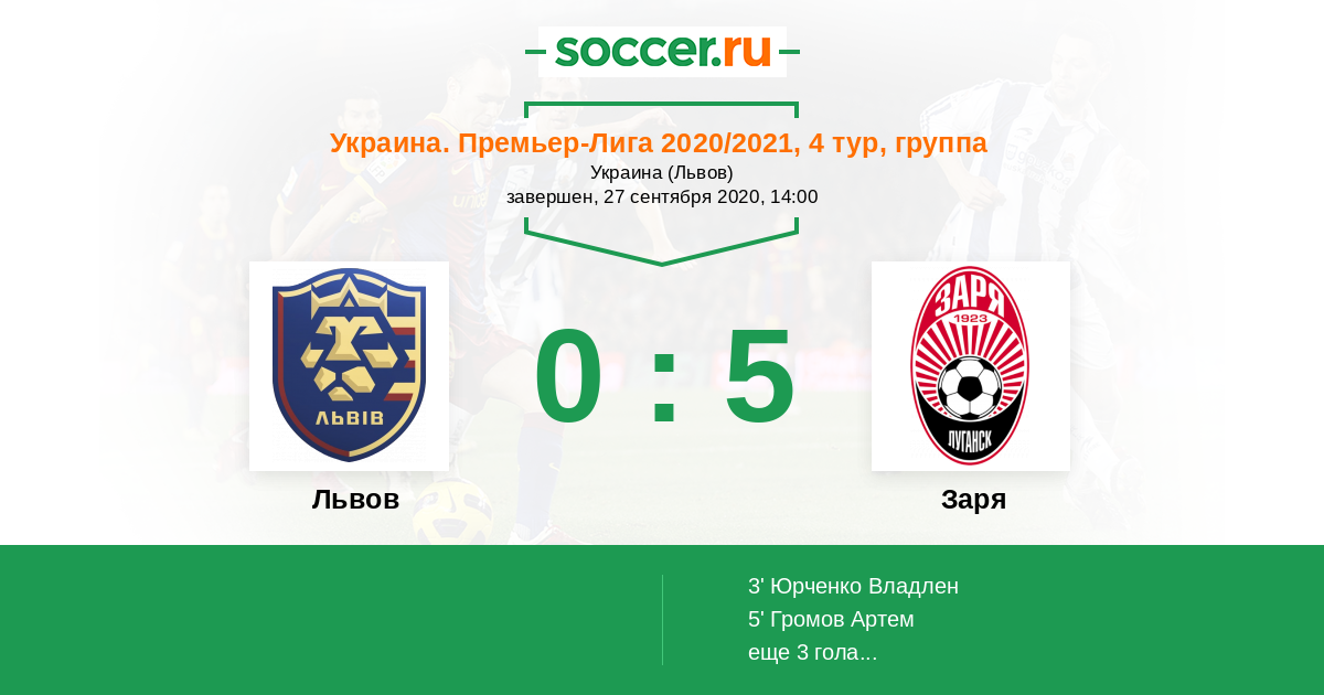 Протокол матча Львов против Заря