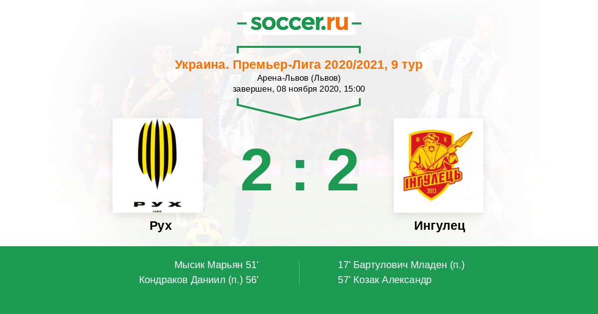 Протокол матча Рух против Ингулец