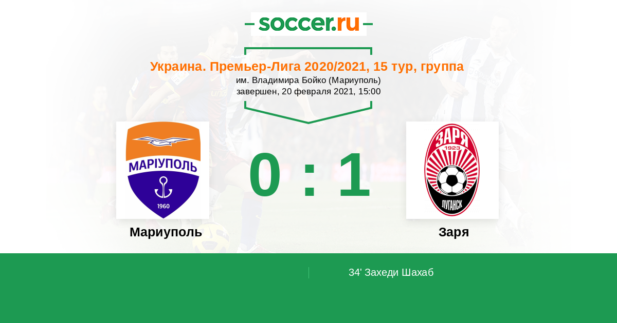 Протокол матча Мариуполь против Заря