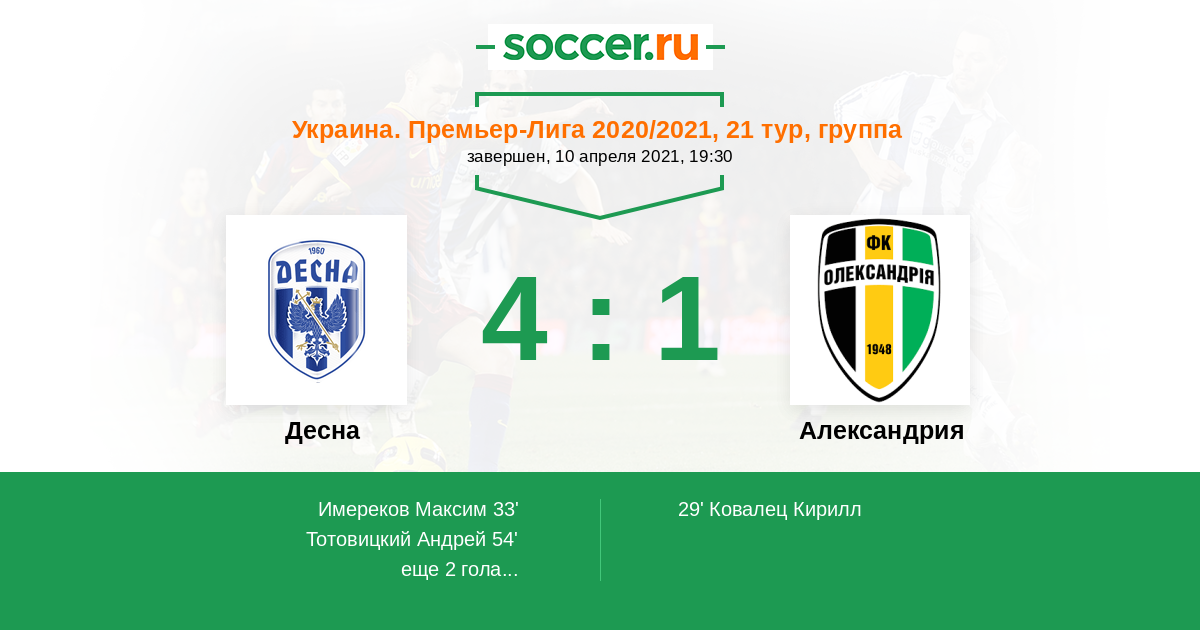 Протокол матча Десна против Александрия