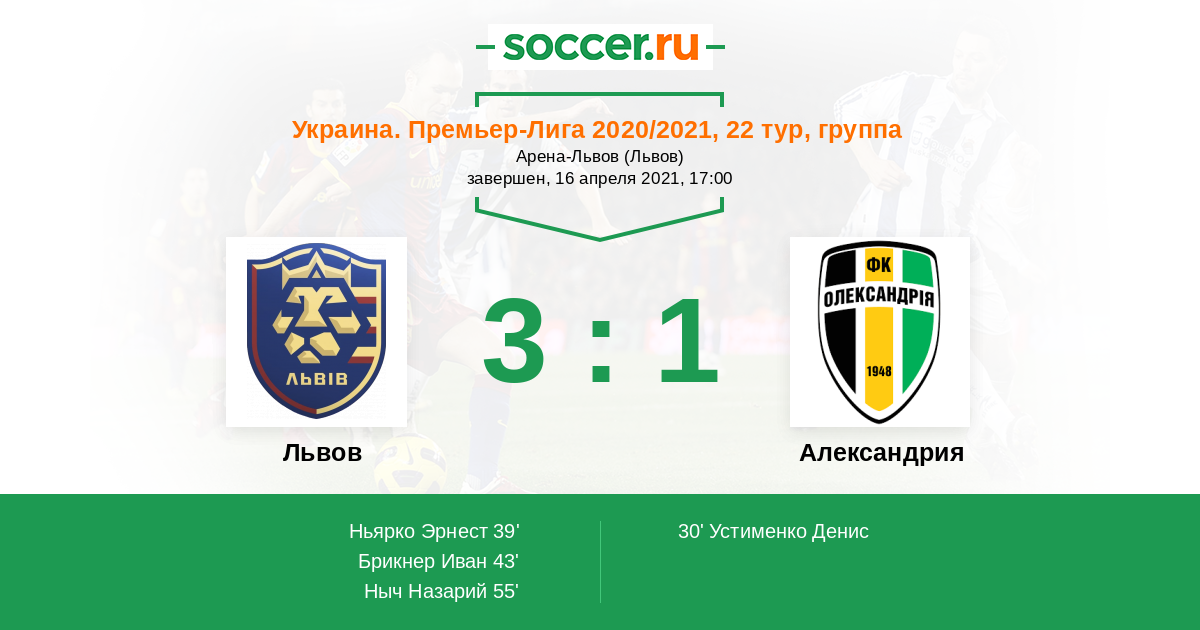 Протокол матча Львов против Александрия