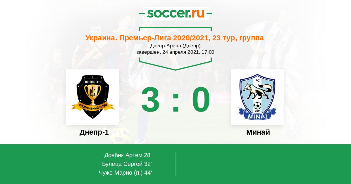 Протокол матча Днепр-1 против Минай
