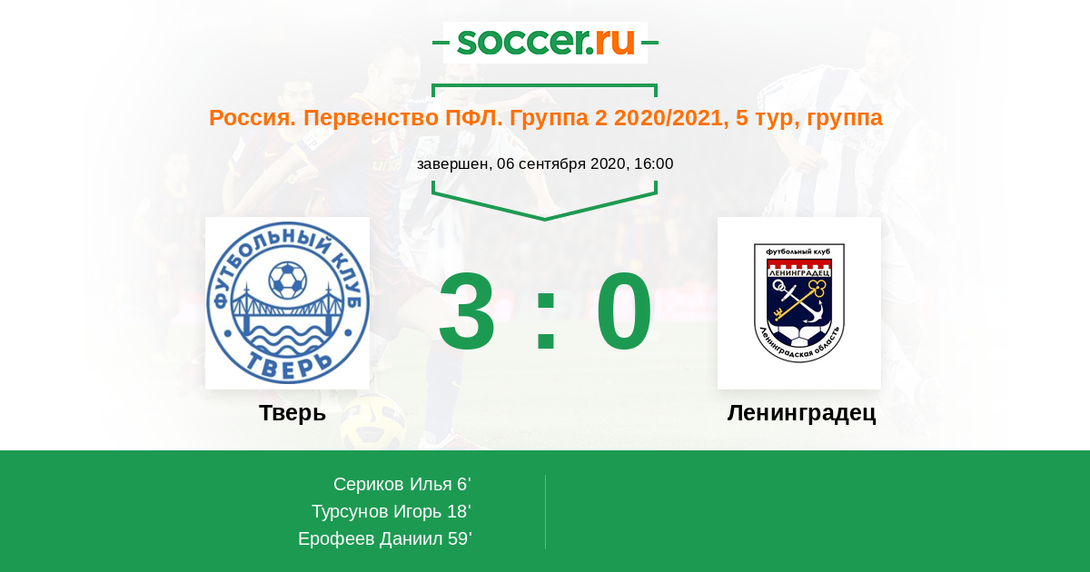 Протокол матча Тверь против Ленинградец