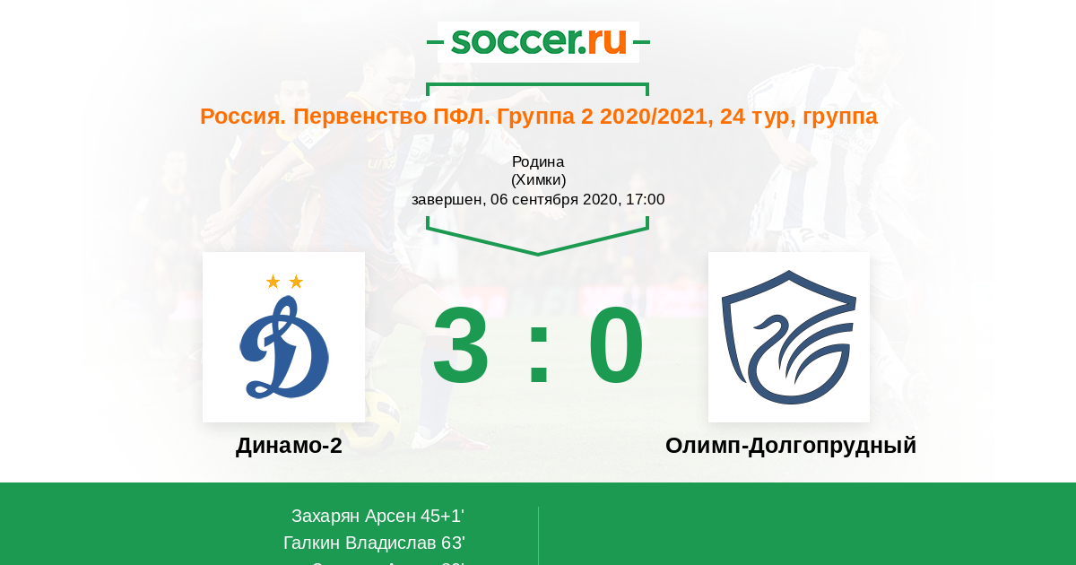 Протокол матча Динамо-2 против Олимп-Долгопрудный