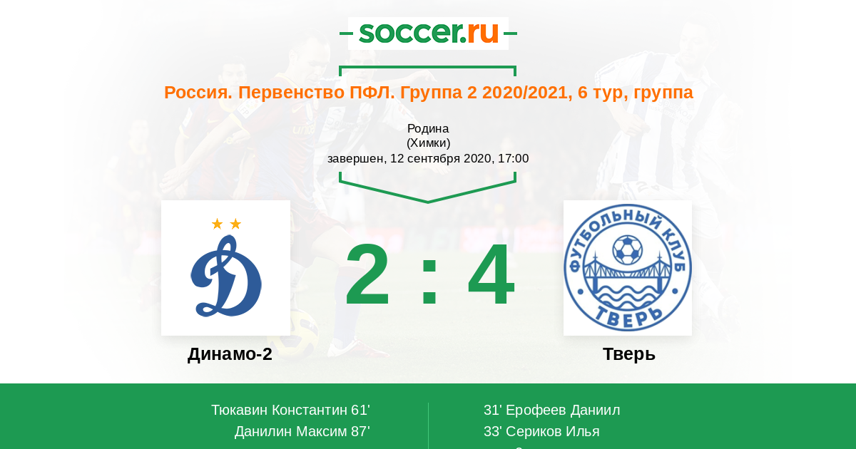Протокол матча Динамо-2 против Тверь