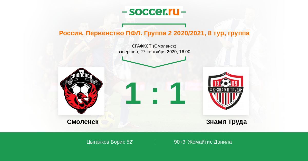 Протокол матча Смоленск против Знамя Труда