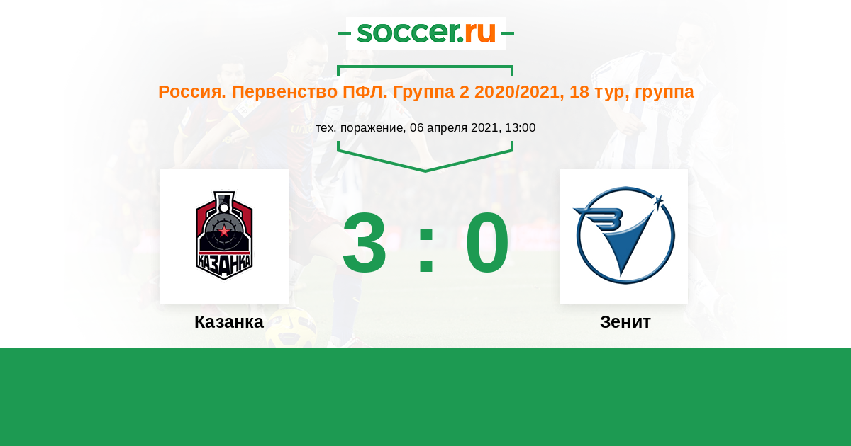 Россия. Вторая лига. Группа 2 13.10.2020 Зенит Логотип футбольный клуб Зенит (Иркутск) 1:3 Логотип футбольный клуб Казанка (Москва) Казанка