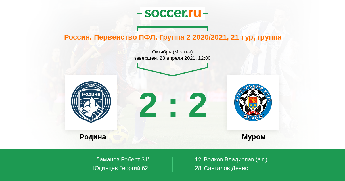 Протокол матча Родина против Муром
