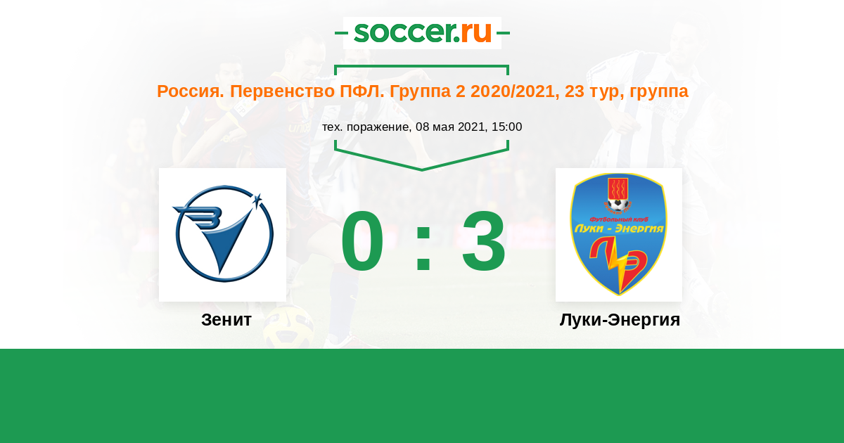 Россия. Вторая лига. Группа 2 12.09.2020 Луки-Энергия Логотип футбольный клуб Луки-Энергия (Великие Луки) 2:0 Логотип футбольный клуб Зенит (Иркутск) Зенит
