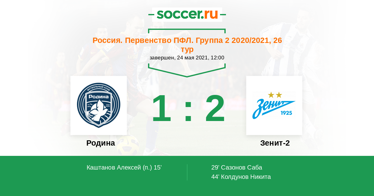 Протокол матча Родина против Зенит-2