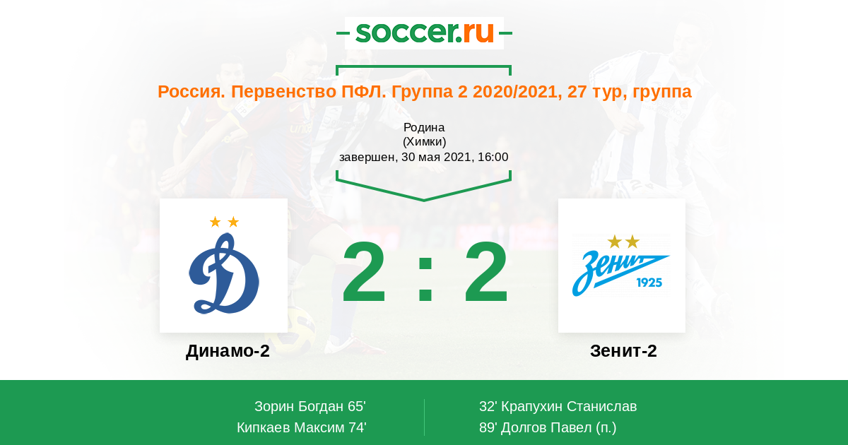 Протокол матча Динамо-2 против Зенит-2