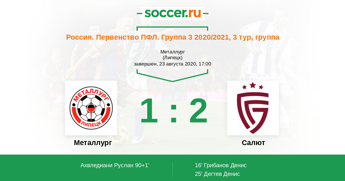 Протокол матча Металлург против Салют
