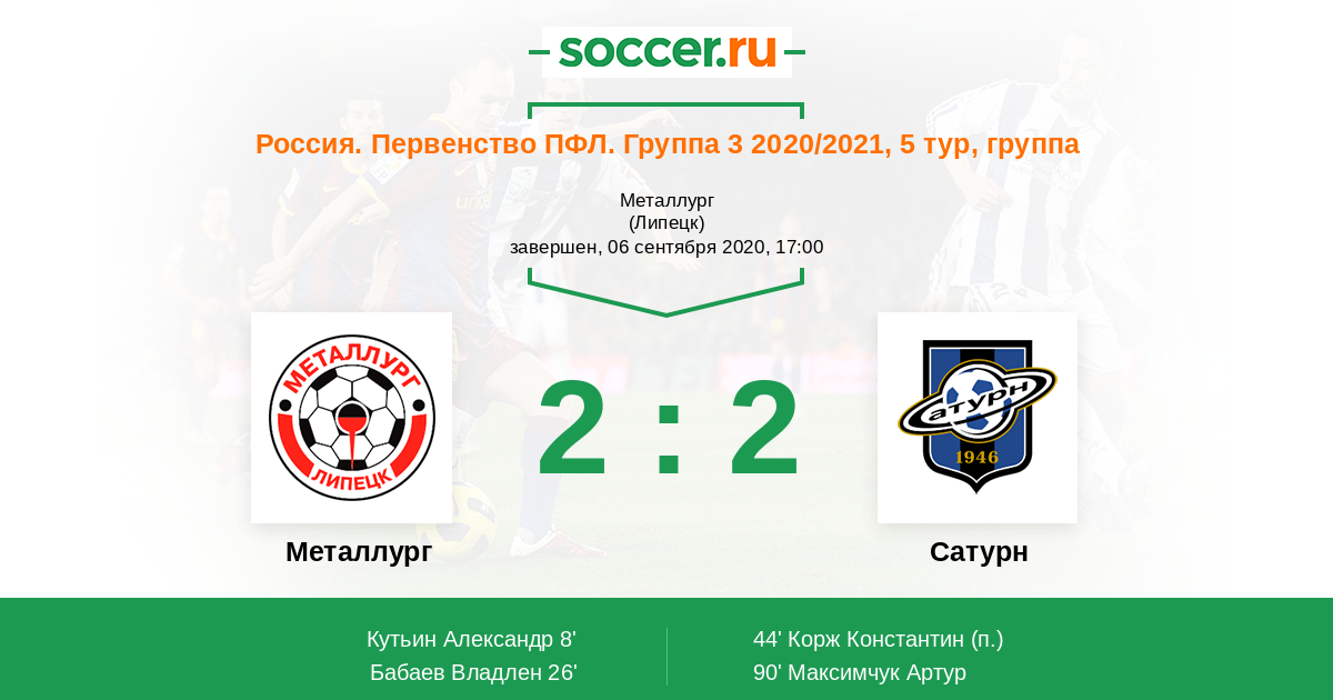Протокол матча Металлург против Сатурн