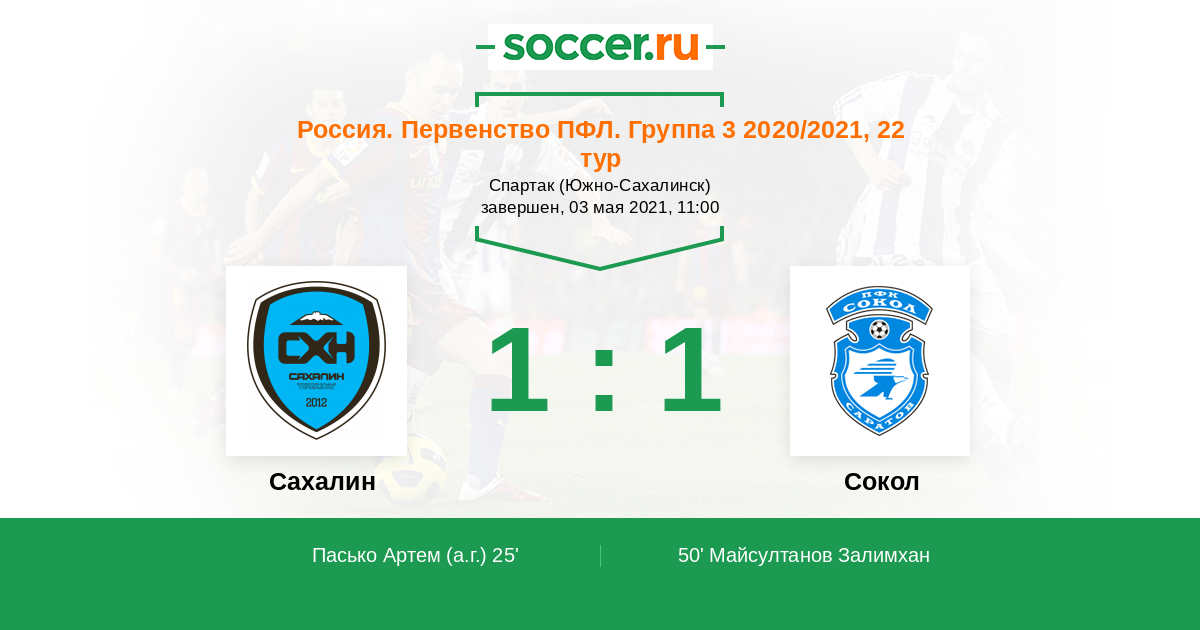 Протокол матча Сахалин против Сокол