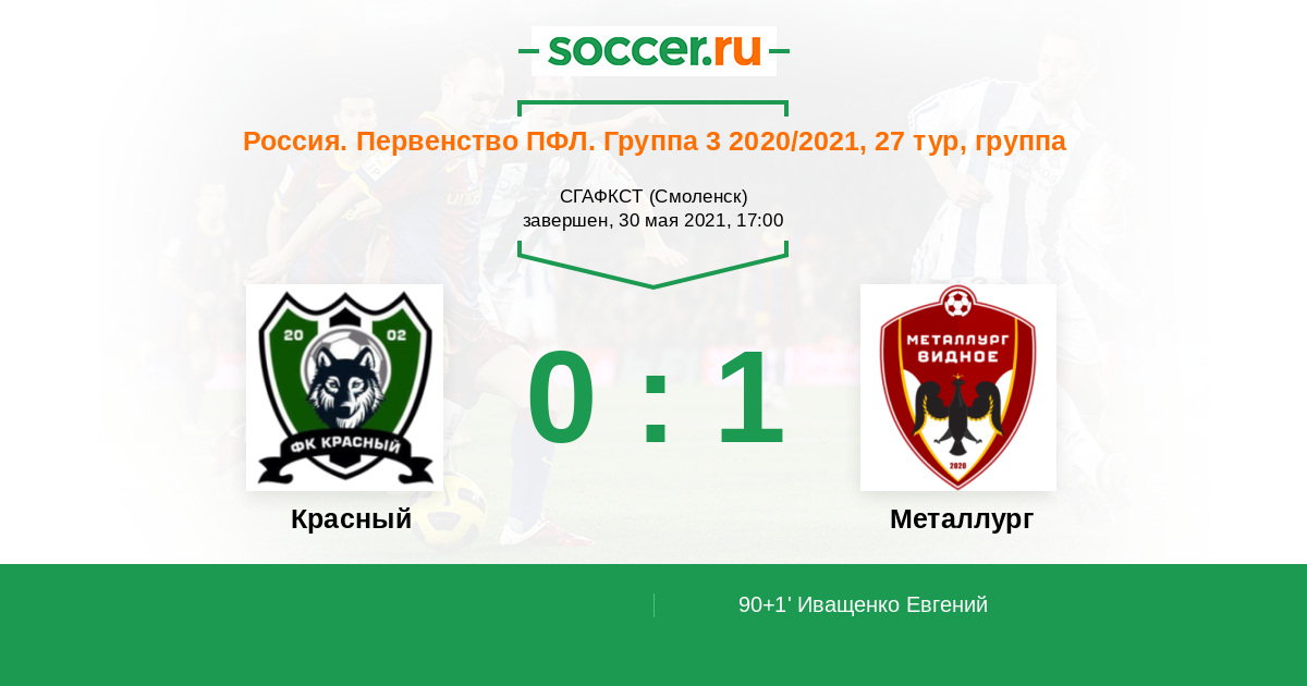 Протокол матча Красный против Металлург