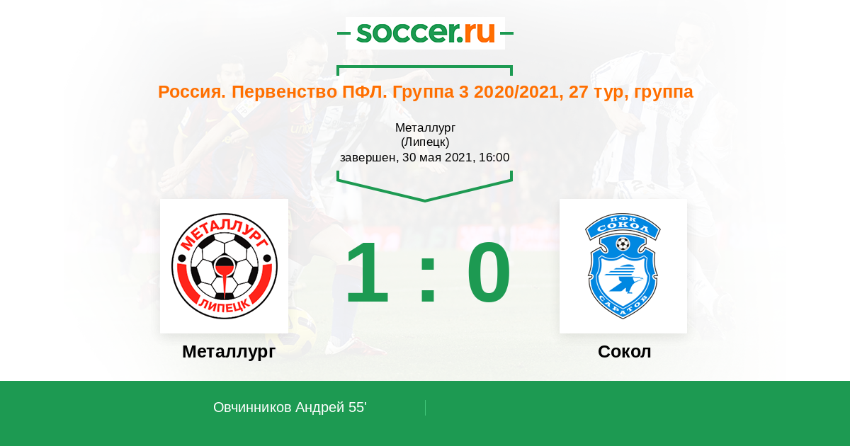 Протокол матча Металлург против Сокол