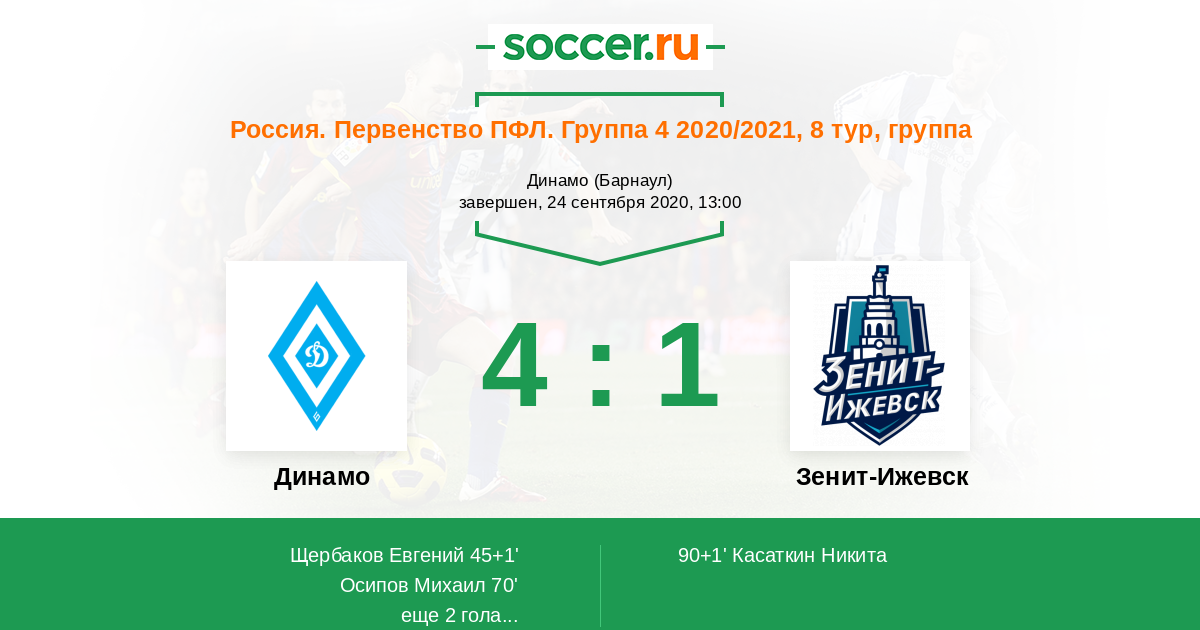 Протокол матча Динамо Барнаул против Зенит-Ижевск