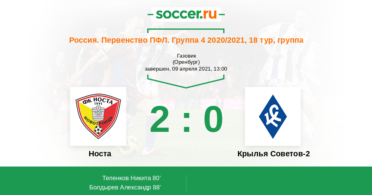 Протокол матча Носта против Крылья Советов-2