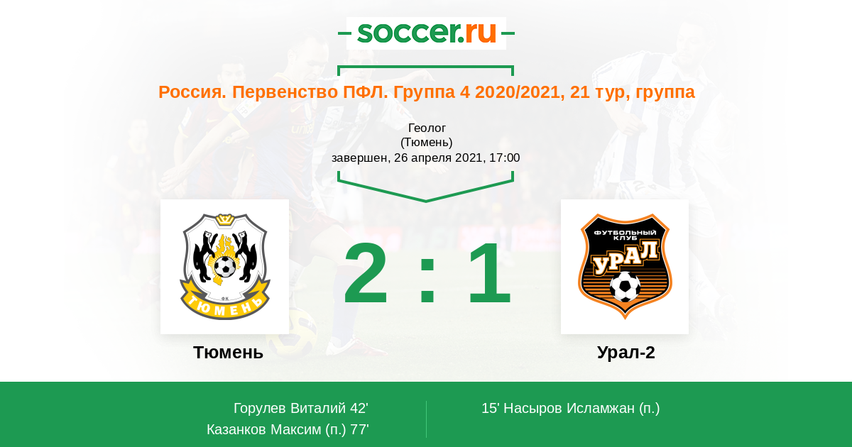 Протокол матча Тюмень против Урал-2
