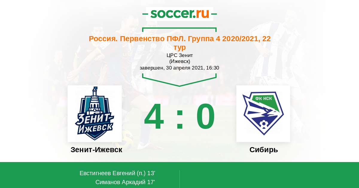 Протокол матча Зенит-Ижевск против Сибирь