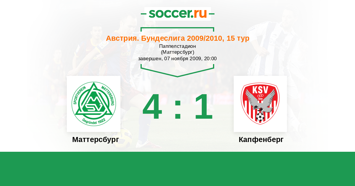 Австрия. Бундеслига 23.08.2009 Капфенберг Логотип футбольный клуб Капфенберг 0:1 Логотип футбольный клуб Маттерсбург Маттерсбург
