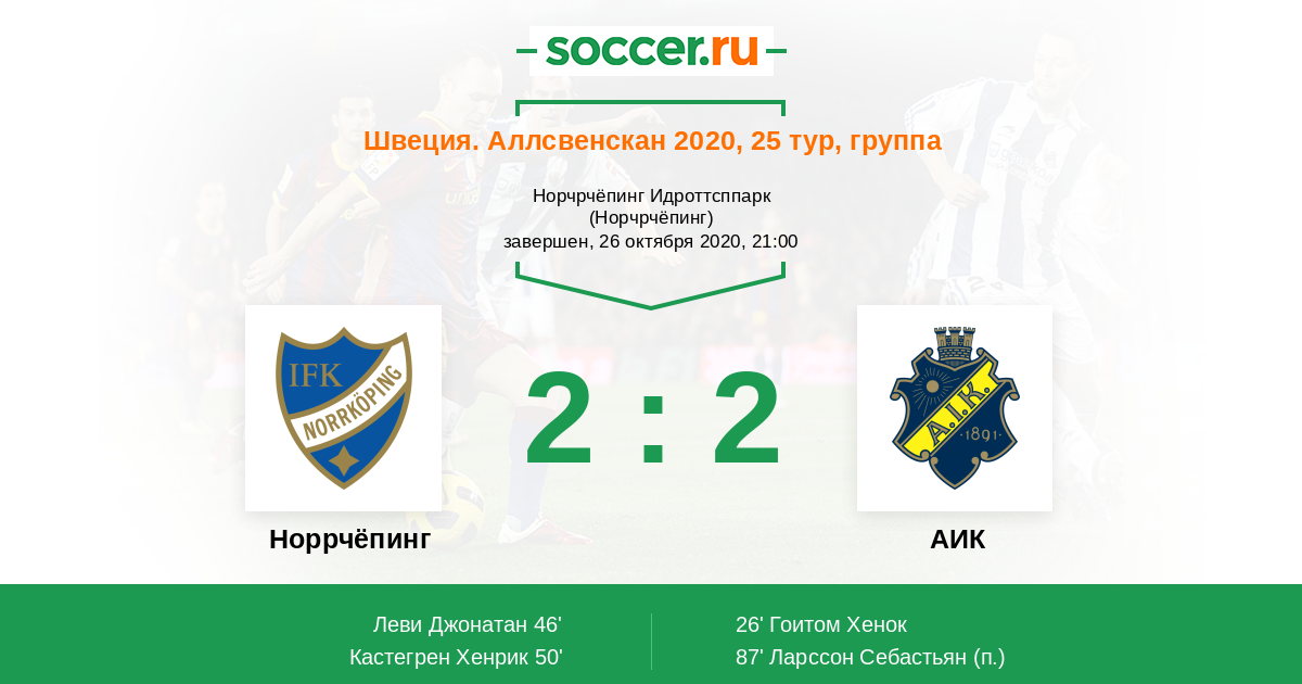 Протокол матча Норрчёпинг против АИК