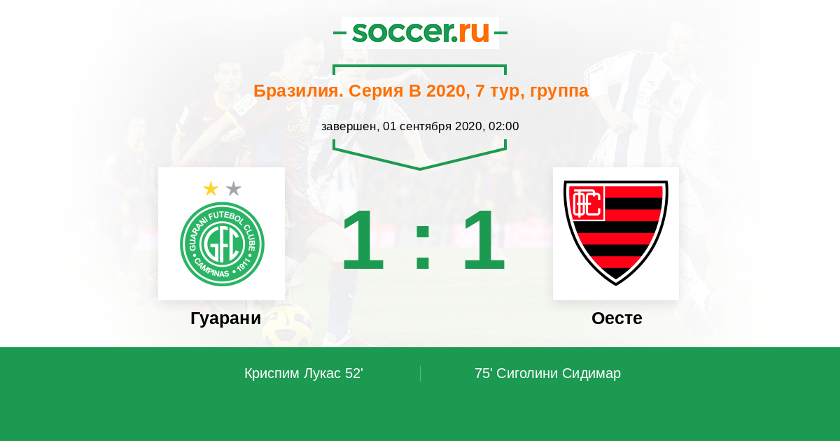 Протокол матча Гуарани против Оесте