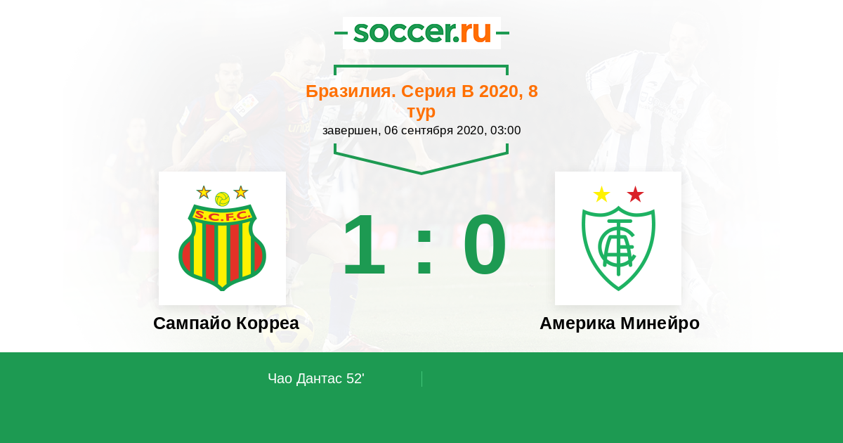 Протокол матча Сампайо Корреа против Америка Минейро