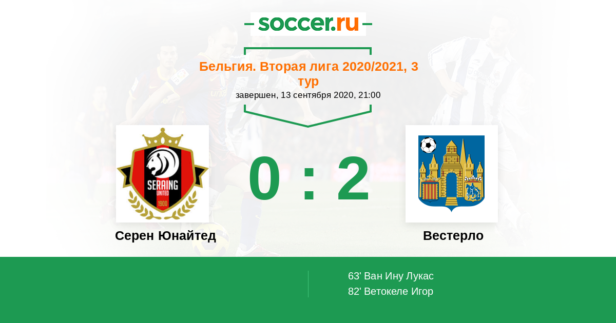 Протокол матча Серен Юнайтед против Вестерло