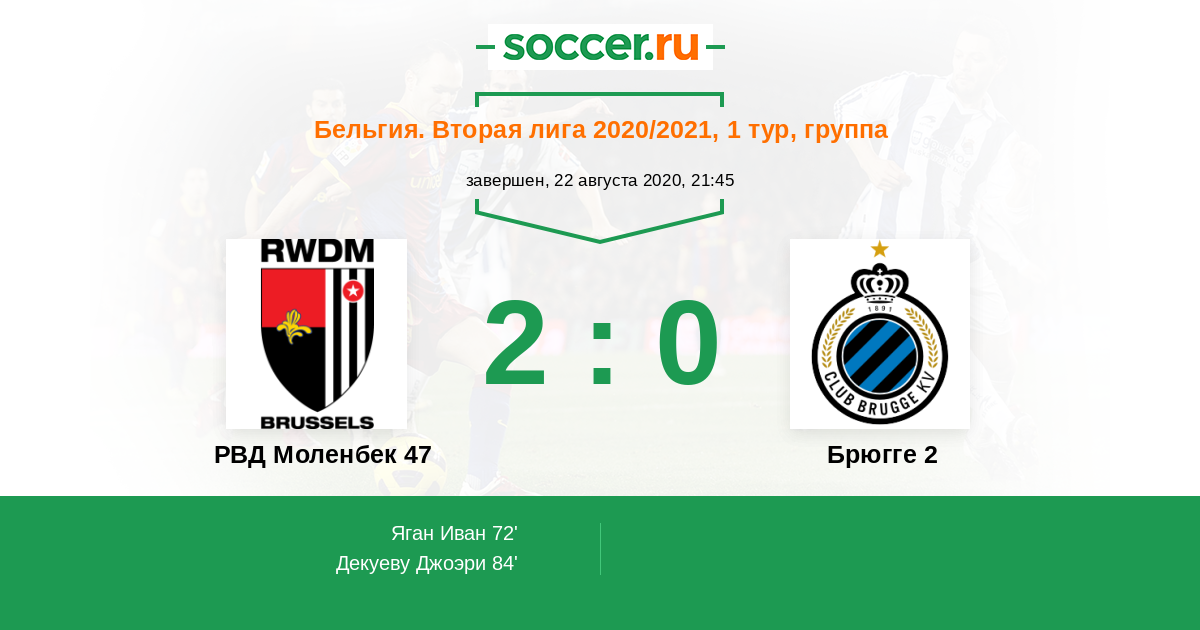 Протокол матча РВД Моленбек 47 против Брюгге 2