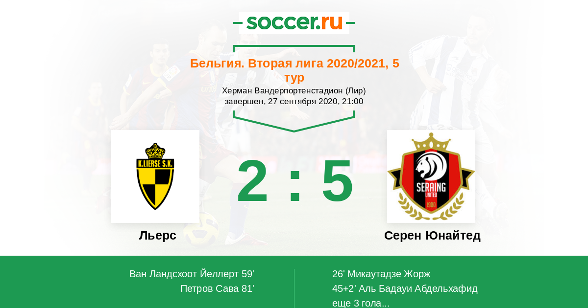 Протокол матча Льерс против Серен Юнайтед