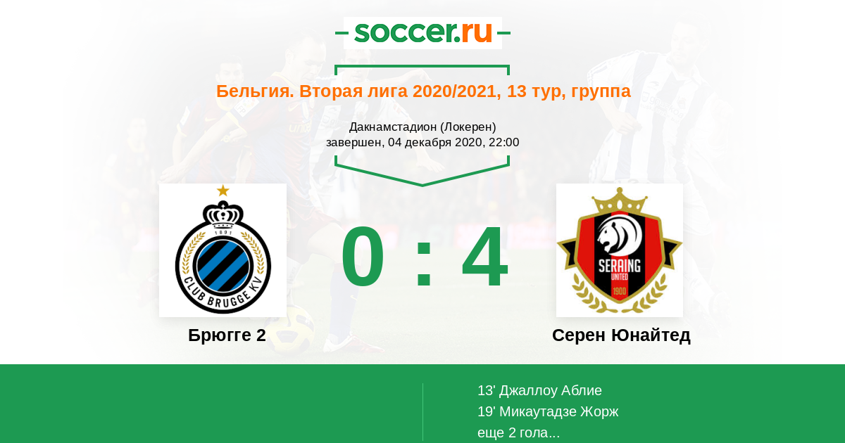 Протокол матча Брюгге 2 против Серен Юнайтед