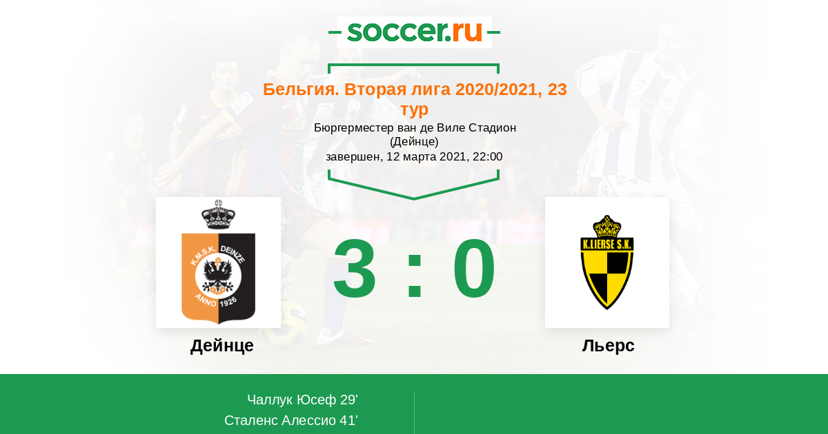 Протокол матча Дейнце против Льерс