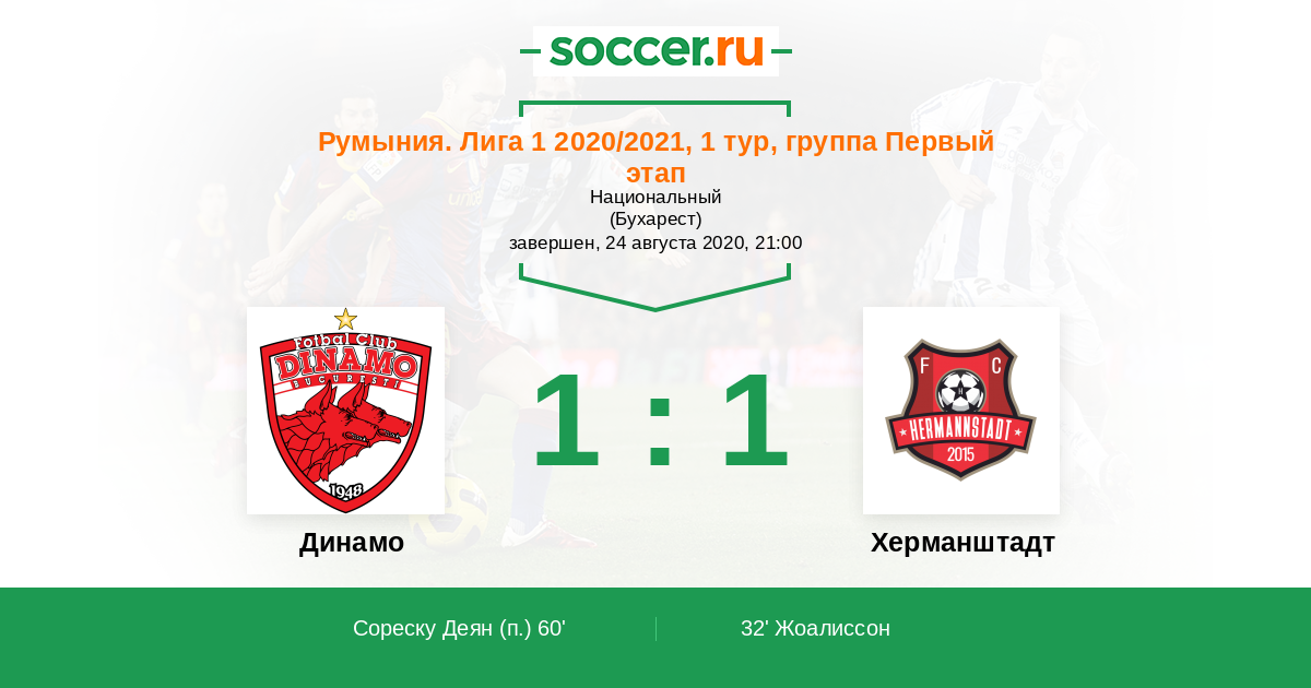 32' (0:1) Жоалиссон (11) (Петреску Петрисор (7))