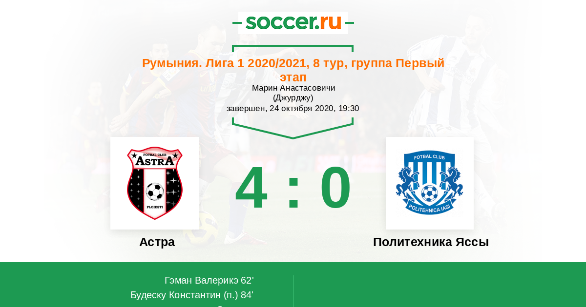 Протокол матча Астра против Политехника Яссы
