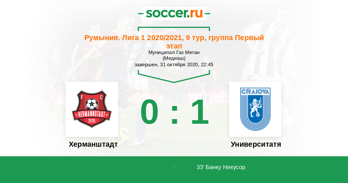 33' (0:1) Банку Никусор (11) (Нистор Дан (16))