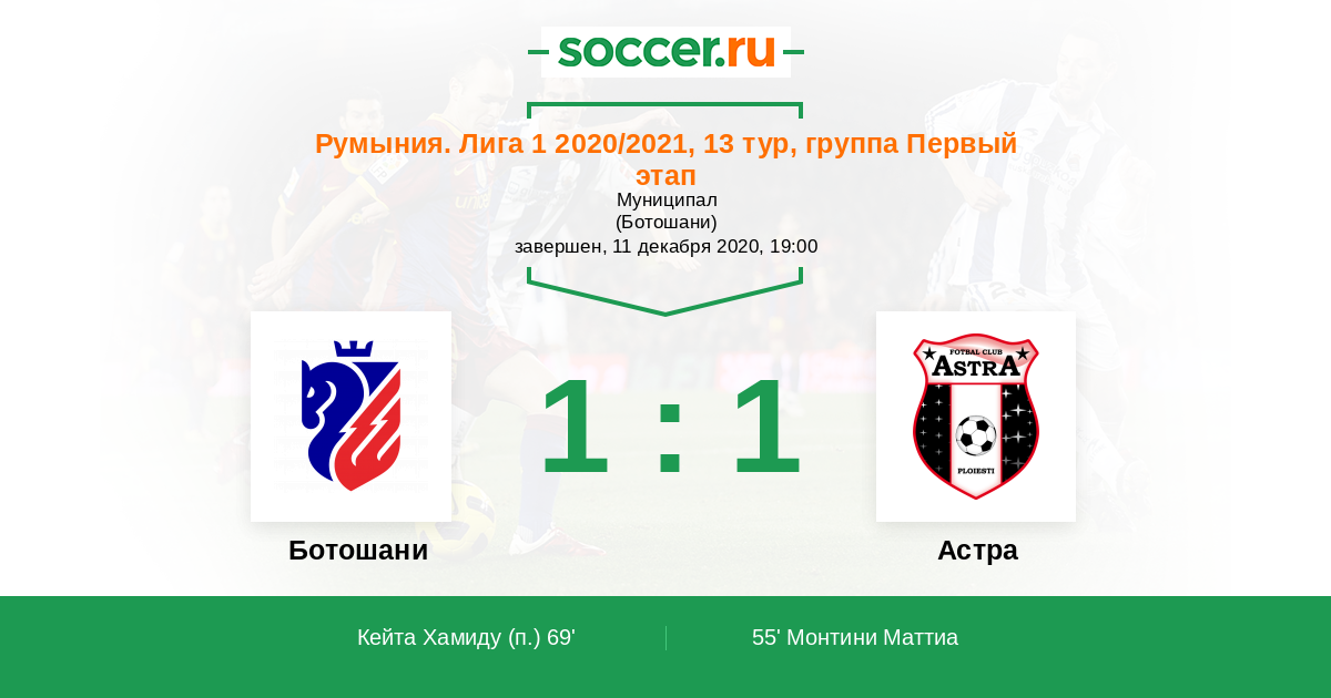 Гол55' (0:1) Монтини Маттиа (43) (Будеску Константин (10))