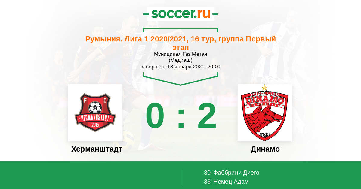 Протокол матча Херманштадт против Динамо