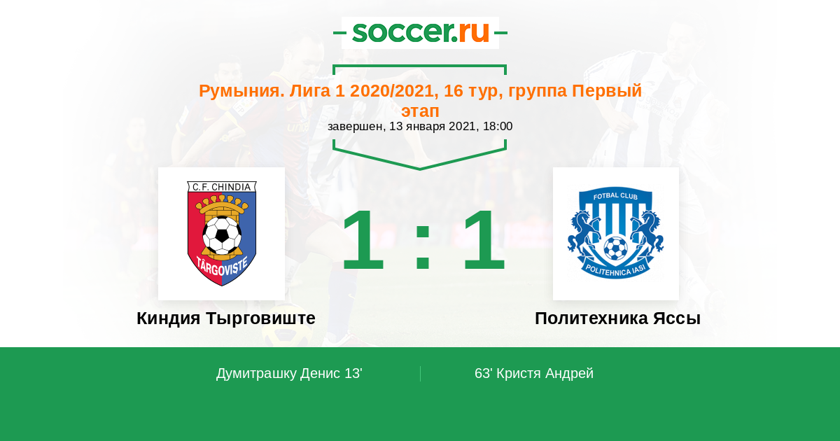 63' (1:1) Кристя Андрей (10)