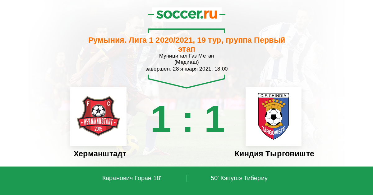Протокол матча Херманштадт против Киндия Тырговиште