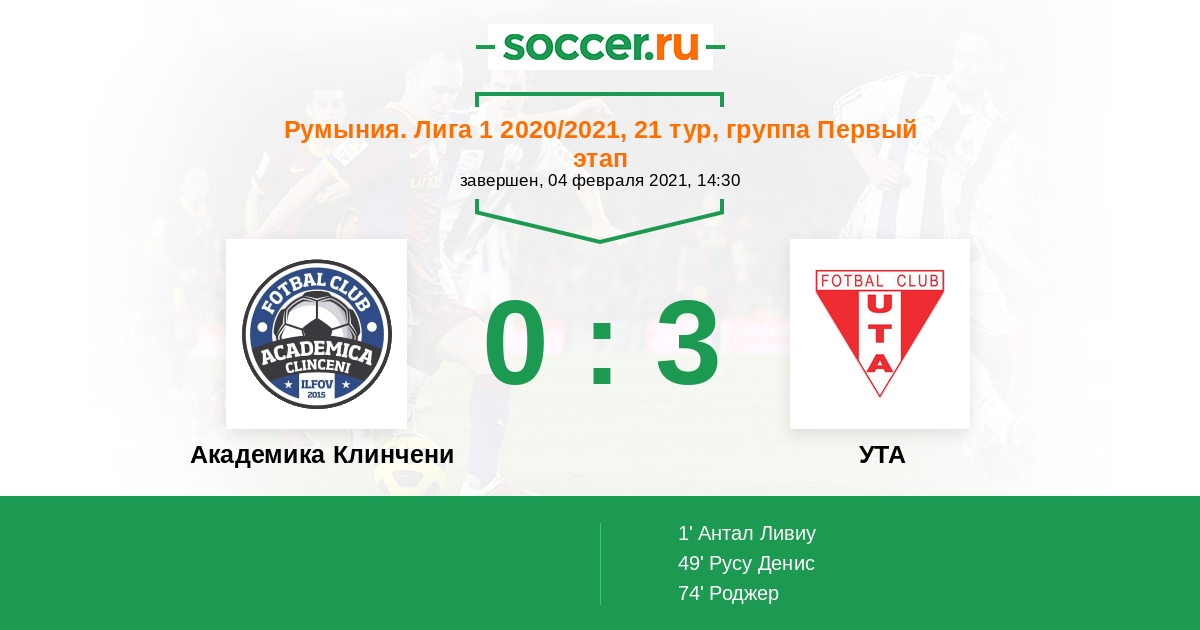 Протокол матча Академика Клинчени против УТА