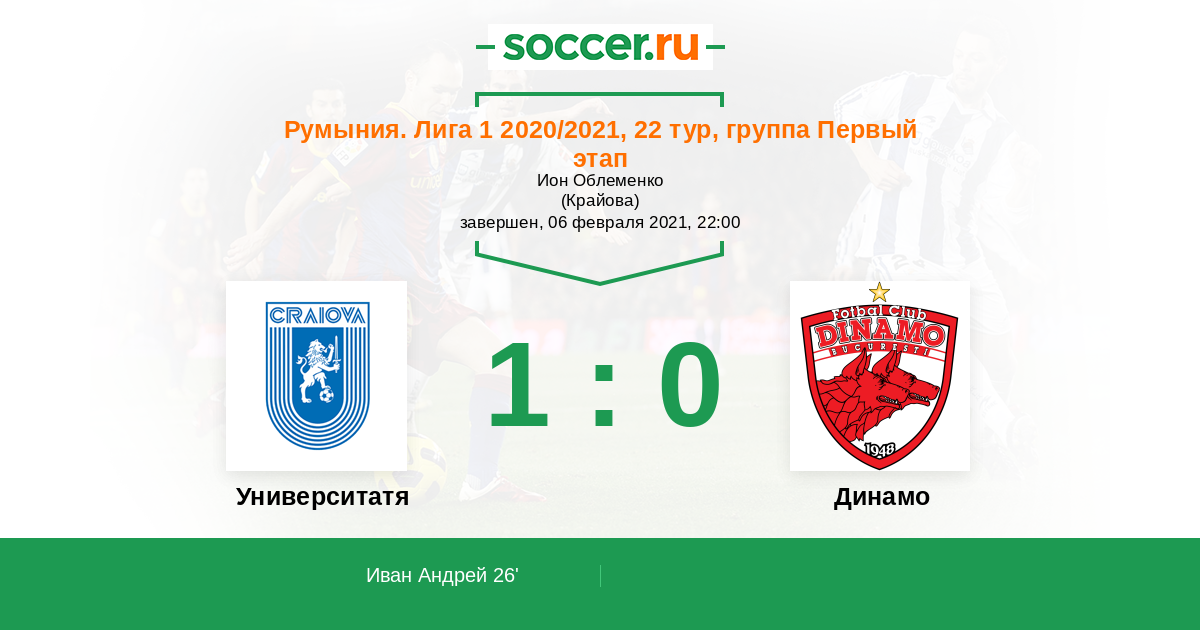 26' (1:0) Иван Андрей (9) (Байарам Стефан (17))