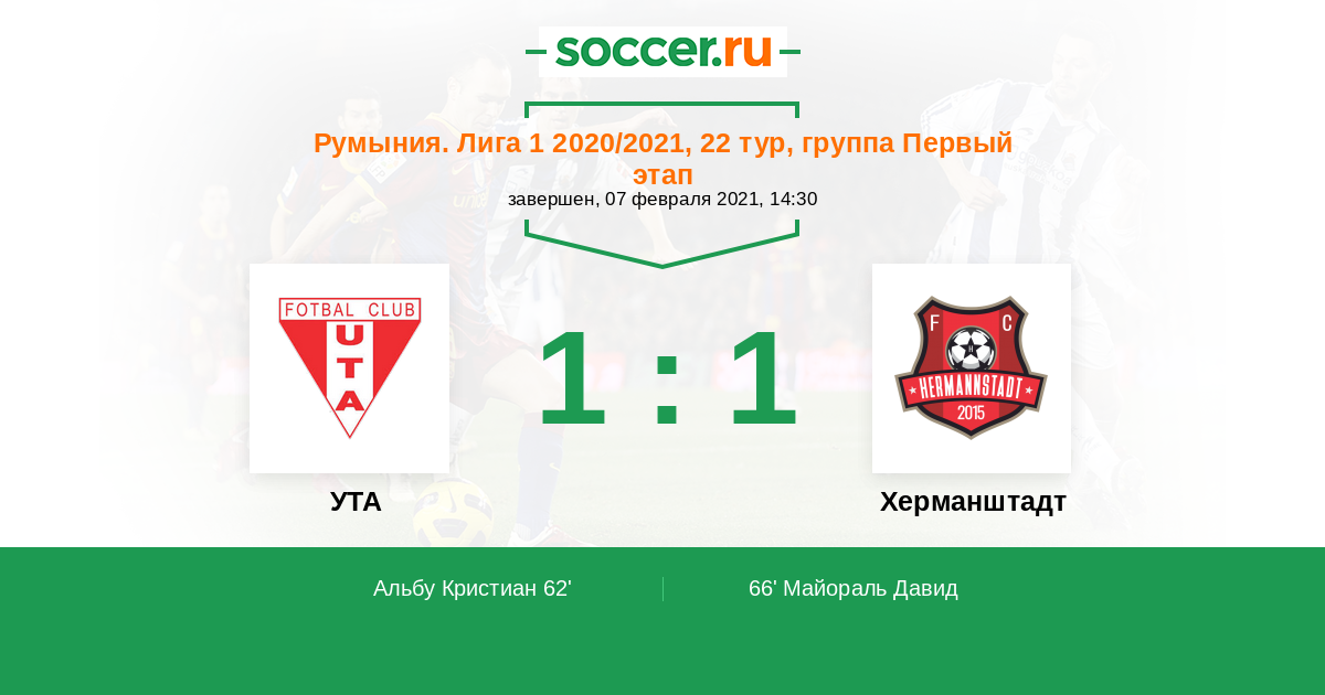 62' (1:0) Альбу Кристиан (6) (Роджер (9))